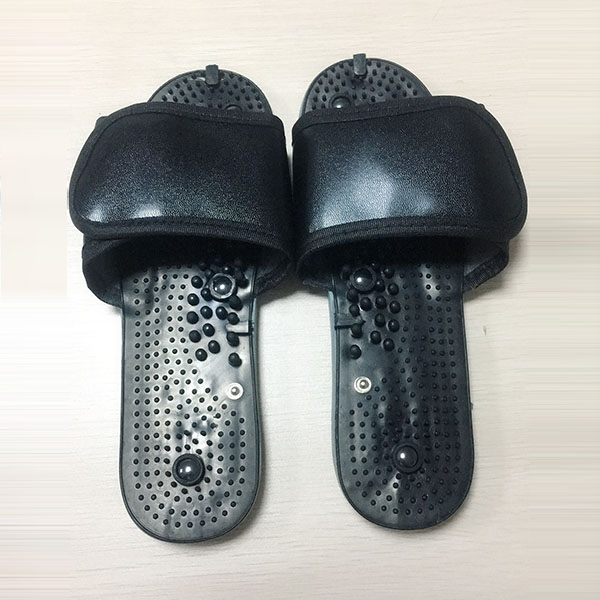 治疗原理:采用医用硅胶按人足底外形设计,鞋面有四颗恒磁粒,当接入治疗仪电脉冲输出时,脉冲生物电场及恒磁场的复合能量直接刺激人体足底穴位。中医认为人的足底集中着人体各内脏器官的反射带和反射区,与大脑和脏腑器官密切关联,有六条经络涉及到足,足底治疗可通向全身。